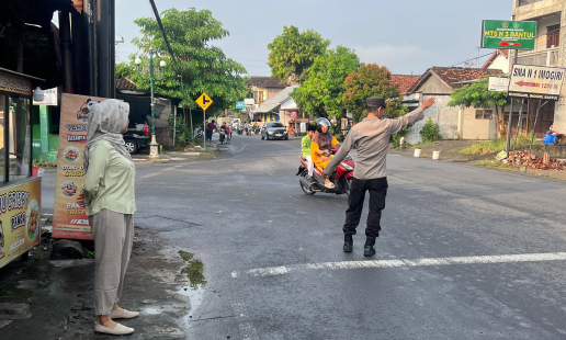 Guna meningkatkan kamseltibcarlantas, Polsek Imogiri melaksanakan kegiatan rutin pos pagi di ...
