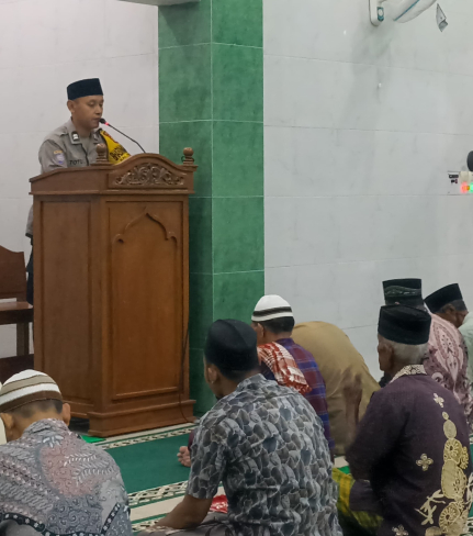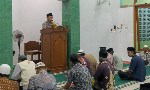 Bhabinkamtibmas Kalurahan Girirejo, Aiptu Toto, memberikan kultum (kuliah tujuh menit) tarawih ...