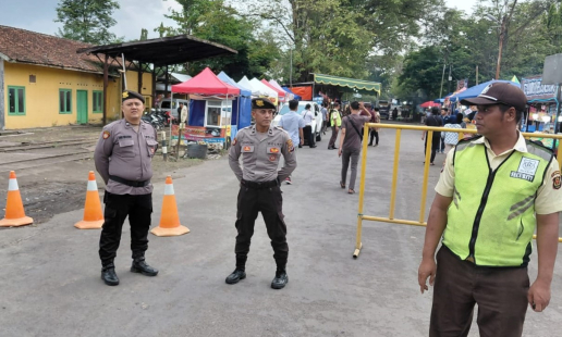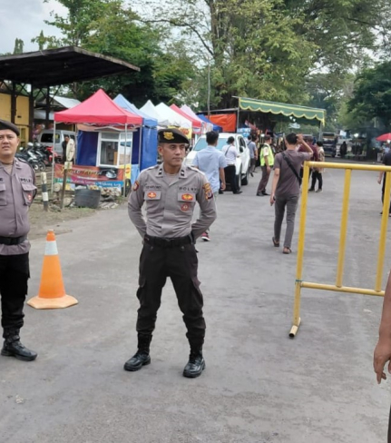 Anggota Polsek Kasihan melaksanakan pengamanan kegiatan peresmian Pasar Malam Cembeng Tahun ...