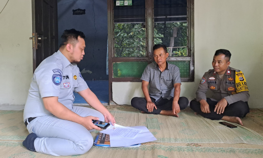 Bhabinkamtibmas Kalurahan Argosari, Aiptu Agus, melaksanakan pendampingan terhadap petugas Jasa ...