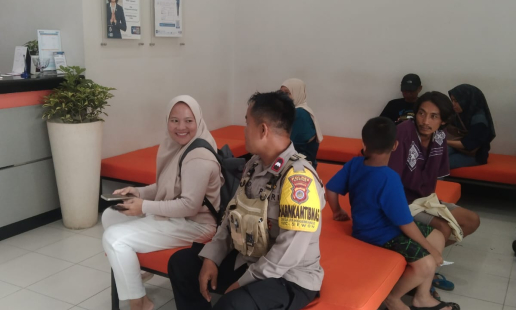 Bhabinkamtibmas Kalurahan Panggungharjo, Aipda Mulyadi, melaksanakan giat sambang di Bank BRI ...