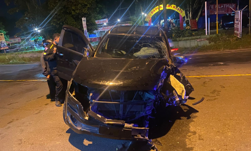 Sebuah kecelakaan tunggal melibatkan mobil SUV Chevrolet Trailblazer terjadi di Jalan Bantul, ...