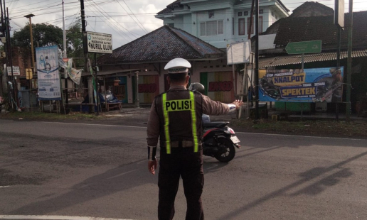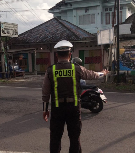 Jajaran personel Polsek Kretek melaksanakan kegiatan pos pagi dan pengaturan lalu lintas mulai ...