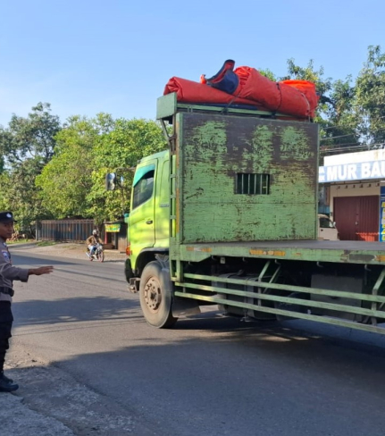 Personel Unit Samapta Polsek Sewon, dipimpin oleh Aiptu Tohari, melaksanakan patroli rutin pada ...