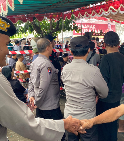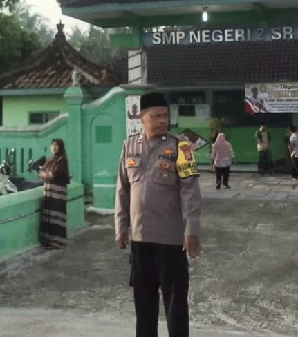 Bhabinkamtibmas Kalurahan Poncosari, Aiptu Ali Murtopo, melaksanakan pengamanan kegiatan ...