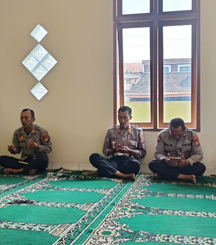 Personel Polsek Piyungan melaksanakan kegiatan pembinaan rohani dan mental (Binrohtal) di ...