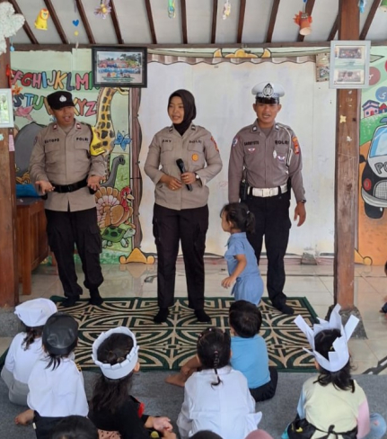 Polsek Banguntapan menggelar kegiatan Polisi Sahabat Anak (PSA) di PAUD/KB Annisa Singosaren, ...