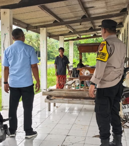 Bhabinkamtibmas Wukirsari, Bripka Chrismawan Adi Nugroho, melaksanakan kegiatan monitoring ...