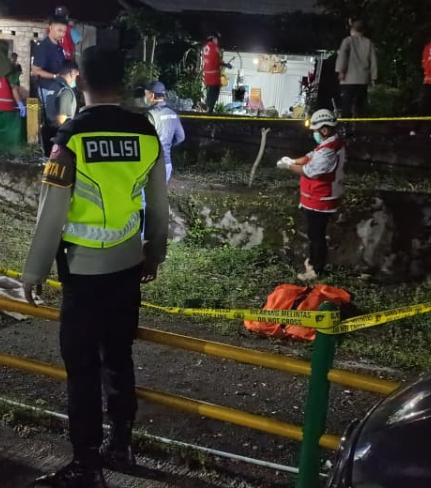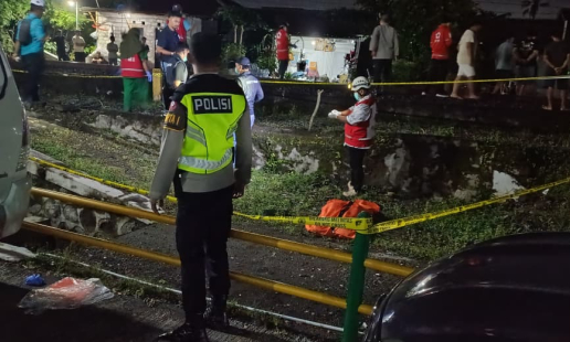 Anggota Polsek Banguntapan mendatangi lokasi kecelakaan kereta api di Pedak Baru Sorowajan, ...