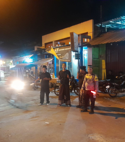 Personel Polsek Sedayu melaksanakan patroli subuh guna mengantisipasi gangguan keamanan dan ...