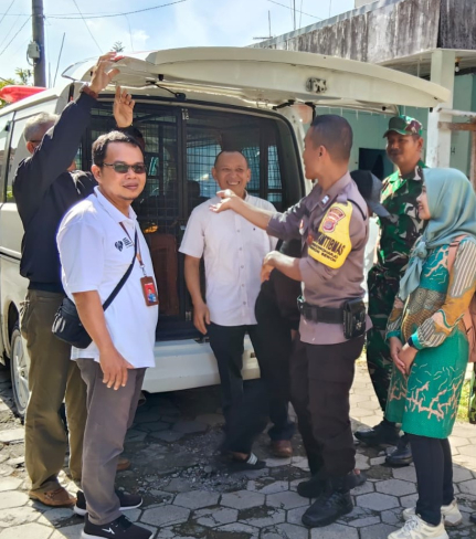 Bhabinkamtibmas Kalurahan Argosari Aiptu Agus Muslim bersama dengan petugas Puskesmas Sedayu 1, ...
