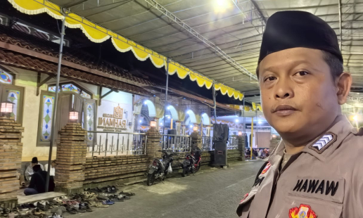 Bhabinkamtibmas Wukirsari, Bripka Chrismawan Adi Nugroho, melaksanakan pengamanan kegiatan ...