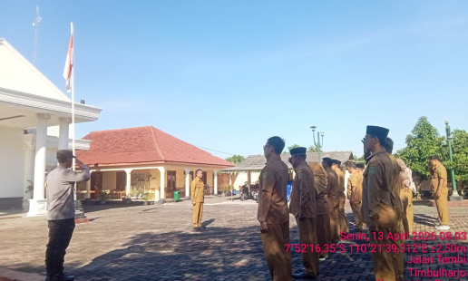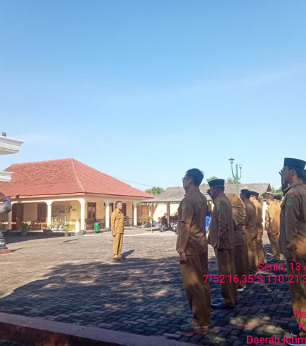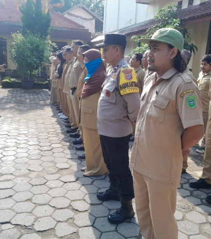 Kapolsek Bantul Kompol Rapiqoh SH MH memimpin apel pembinaan rutin bagi para Pamong dan staf ...