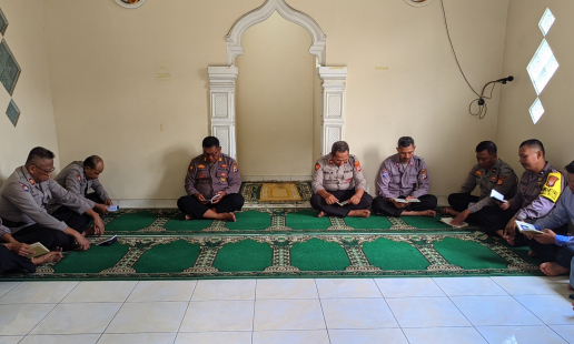 Personel Polsek Piyungan melaksanakan kegiatan Bimbingan Rohani dan Mental (Binrohtal) berupa ...