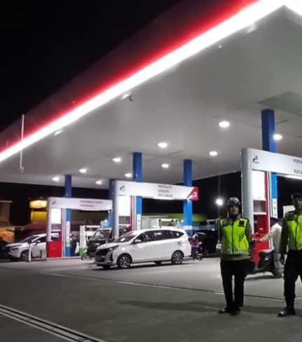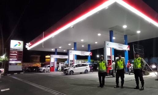 Anggota Samapta Polsek Banguntapan melaksanakan pemantauan di sejumlah SPBU wilayah ...