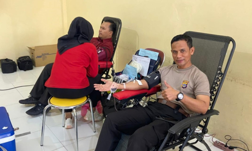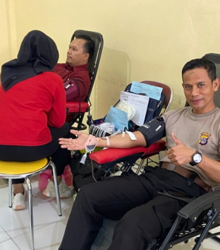 Kanit Binmas Polsek Banguntapan AKP Ihwan Wahyudi SH turut berpartisipasi dalam kegiatan donor ...