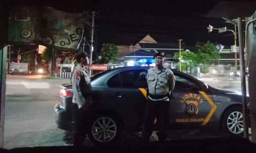 Unit Samapta Polsek Sewon melaksanakan kegiatan patroli dini hari di wilayah Kapanewon Sewon, ...