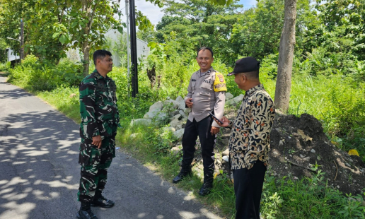 Bhabinkamtibmas Kalurahan Bangunjiwo, Aipda Siswantoro, melakukan pemantauan pengiriman ...