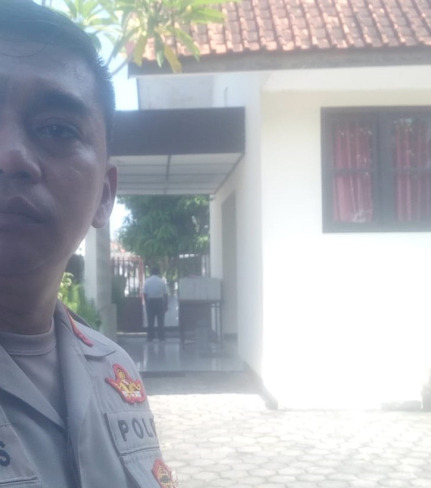 Bhabinkamtibmas Kalurahan Bangunjiwo Aipda Siswantoro melaksanakan pengamanan kegiatan ibadah ...