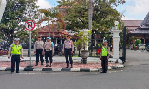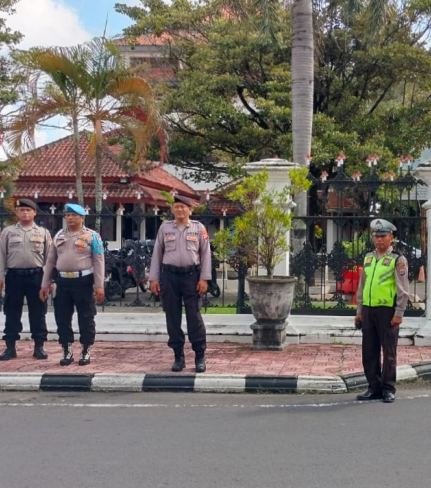 Jajaran Polsek Bantul dipimpin Panit Samapta Iptu Sultoni melaksanakan pengamanan pada acara ...