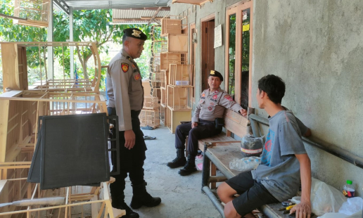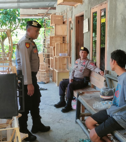 Bhabinkamtibmas Kalurahan Tirtonirmolo, Bripka Dwi Wahono, melaksanakan kegiatan sambang warga ...