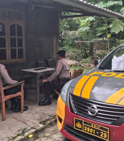 Unit Samapta Polsek Piyungan melaksanakan patroli dialogis dengan menyambangi warga di Dusun ...
