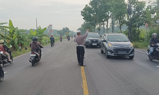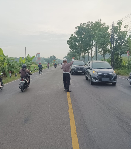 Unit Lalu Lintas Polsek Sedayu melaksanakan kegiatan Pos Pagi dengan tujuan untuk mengatur dan ...