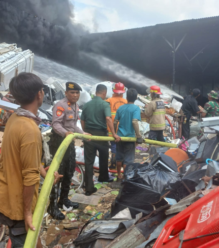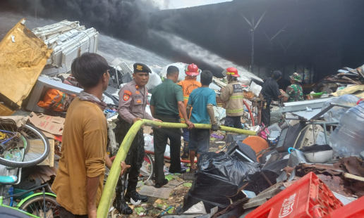 Sebuat kebakaran hebat melanda tempat pengepul rosok di Padukuhan Jogonalan lor RT 01, ...