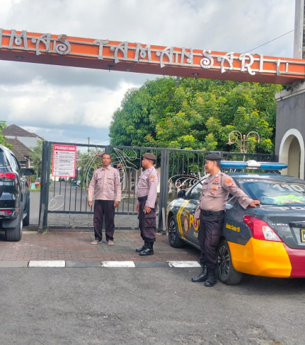 Anggota Samapta Polsek Banguntapan melaksanakan pengamanan kegiatan Salat Jumat di Masjid Gede ...