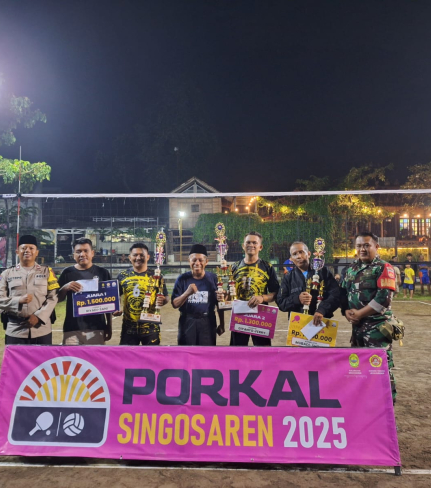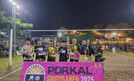 Bhabinkamtibmas Kalurahan Singosaren, Aiptu Sutopo, melaksanakan pemantauan kegiatan Final Voli ...