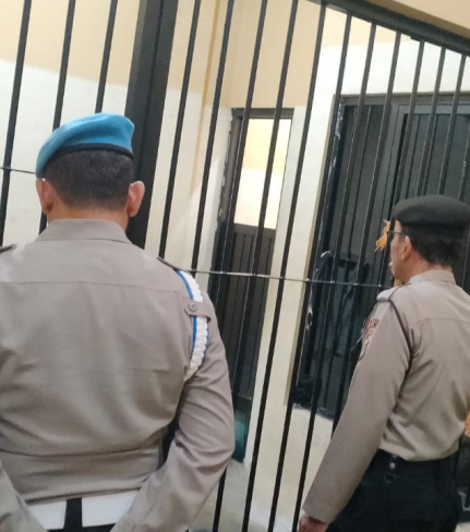 Petugas Polsek Banguntapan melaksanakan pengecekan rutin terhadap kondisi ruang tahanan. ...