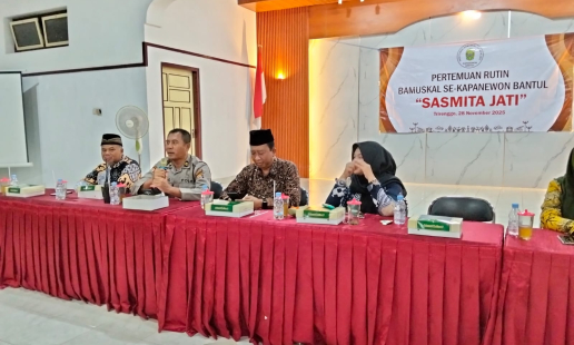 Bhabinkamtibmas Kalurahan Tamanan, Aiptu Setiyo Prabowo, menghadiri kegiatan pengajian rutin ...