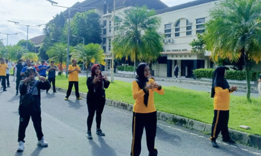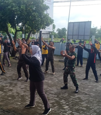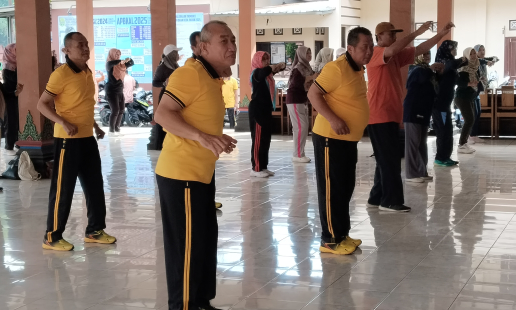 Anggota Polsek Sewon turut berpartisipasi dalam kegiatan senam bersama lintas sektoral ...