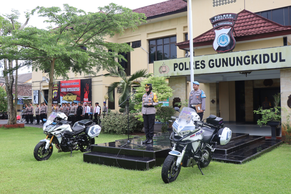 Gunungkidul - Kepolisian Resor Gunungkidul menggelar Apel Gelar Pasukan Operasi Zebra Progo 2025 di halaman Mapolres Gunungkidul, pada Senin, 17 November 2025. Apel yang dipimpin langsung oleh Kapolres Gunungkidul AKBP Miharni Hanapi, S.I.K, M.M., ini menandai dimulainya operasi yang akan berlangsung selama 14 hari, yakni mulai tanggal 17 hingga 30 November 2025.Apel ini diikuti oleh Pejabat Utama dan seluruh Kapolsek jajaran, serta melibatkan peserta dari personel gabungan TNI, Polri, Satpol PP dan Dishub Kabupaten Gunungkidul.