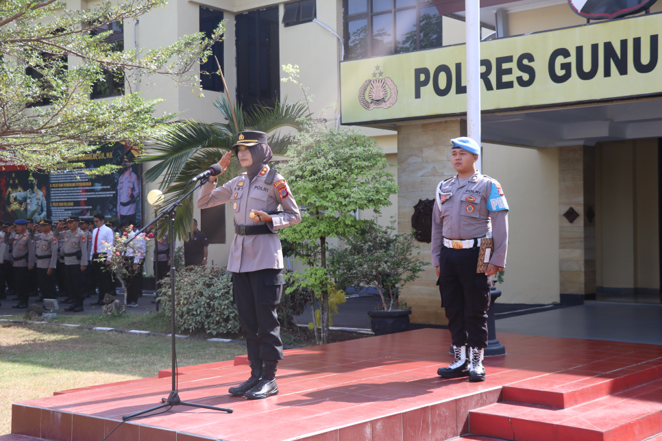 Kapolres Gunungkidul Pimpin Upacara Korp Raport Pengabdian Anggota Polres Gunungkidul