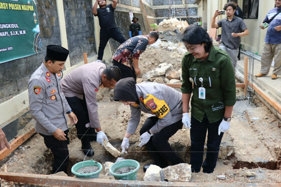 GUNUNGKIDUL - Kapolres Gunungkidul, AKBP Miharni Hanapi, S.I.K., M.M., secara simbolis meletakkan batu pertama pembangunan Mushola Al-Arsy di lingkungan Polsek Nglipar, Kamis, 9 Oktober 2025.Dalam sambutannya, AKBP Miharni Hanapi mengucapkan syukur kepada Allah SWT dan menyampaikan harapan besar, bangunan ini dapat berdiri dengan Kokoh dan kuat, serta menjadi sarana untuk beribadah dan memperkokoh ukhuwah islamiyah.