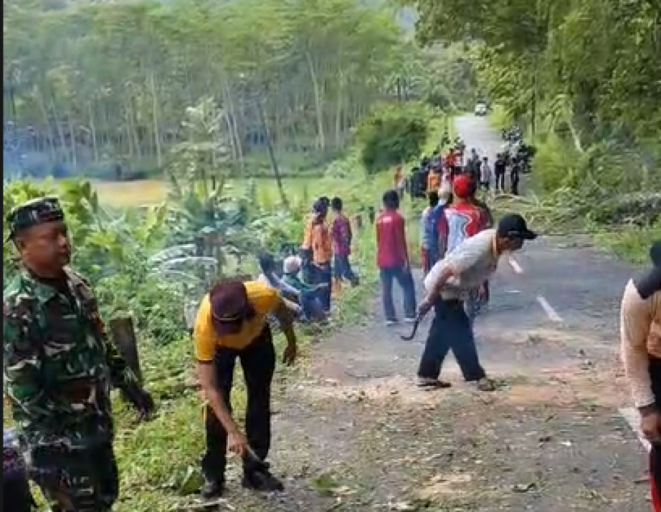 GUNUNGKIDUL - Kesigapan dalam mengantisipasi potensi bencana akibat cuaca ekstrem ditunjukkan oleh jajaran Polsek Girisubo. Pada Jumat pagi (23/1/2026), Kapolsek Girisubo AKP Agus Supriyanta, S.I.P., turun langsung memimpin aksi kerja bakti membersihkan dahan dan ranting pohon di sepanjang Jalan Sadeng-Pucung.Kegiatan yang ini merupakan bentuk kolaborasi nyata antara TNI-Polri, Pemerintah Kapanewon, dan relawan. Hadir dalam kegiatan tersebut Kapolsek Girisubo, perwakilan Koramil (Peltu Hervianto), personel Polsek, tim SAR Satlinmas Wilayah I, serta warga masyarakat dari Kalurahan Pucung dan Songbanyu, sehingga tergambar suasana guyub rukun antara petugas dan warga bahu-membahu memangkas dahan-dahan pohon yang mulai lapuk dan mengarah ke badan jalan.