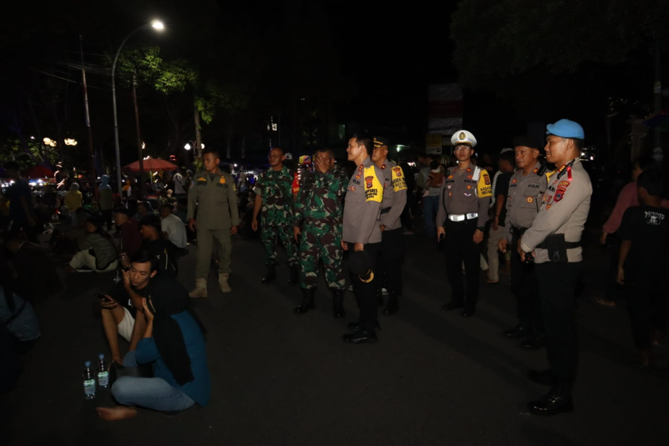 Kapolres Gunungkidul AKBP Edy Bagus Sumantri,S.I.K, bersama dengan Dandim 0730/GK dan Kepala OPD Gunungkidul yang melakukan pemantauan langsung pelaksanaan pengamanan dilapangan oleh personel gabungan tersebut selanjutnya bergabung bersama dengan masyarakat menunggu detik-detik pergantian tahun di alun-alun pemkab Gunungkidul.
