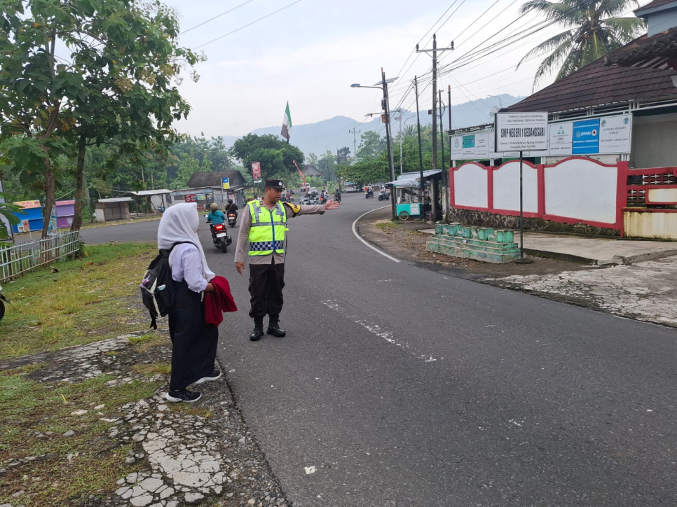 Pastikan Aman, Polsek Gedangsari Atur Lalu Lintas di Depan SMPN 1