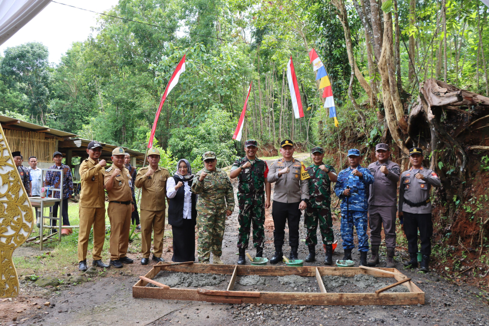 Kapolres Gunungkidul bersama unsur Forkopimda turut mendampingi Bupati dalam sesi pemotongan pita dan peletakan batu pertama di lokasi pembangunan talud dan jalan rabat beton.