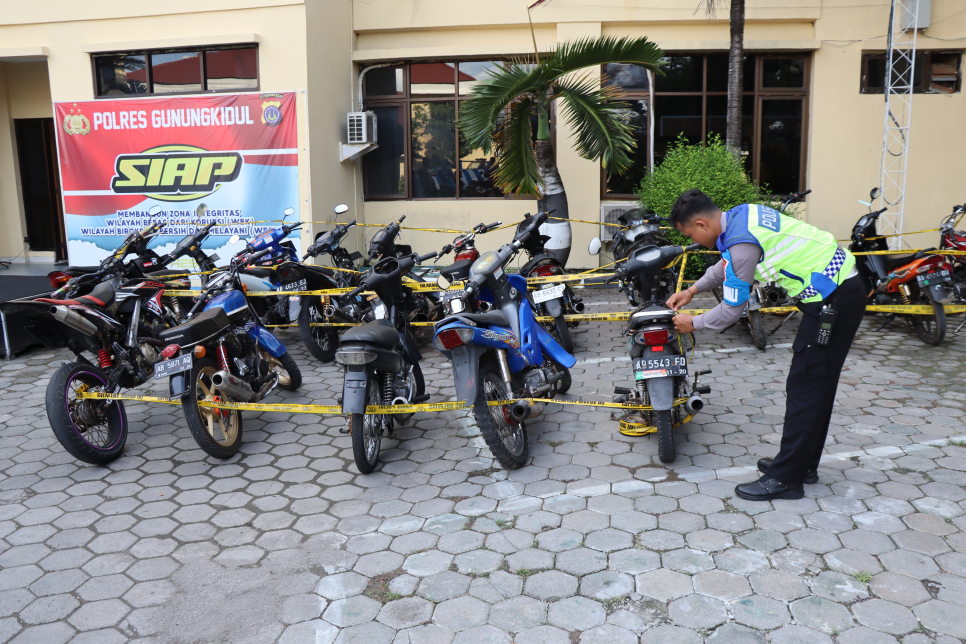 Terkait pelanggaran lalulintas dalam hal ini penggunaan Knalpot yang tidak sesuai dengan spesifikasi teknis secara tegas langsung diamankan ke Polres Gunungkidul sehingga tidak menganggu pengguna jalan lainnya karena dampak suaranya yang ditimbulkan, Jum'at, 9/2/2024.
