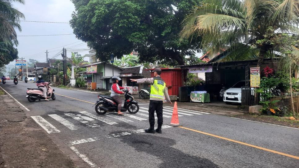 Sejak pukul 06.30 WIB, dua personel senior, Aiptu Andar Mustofa dan Aiptu Sutadi, telah bersiaga di titik penyeberangan. Di bawah arahan Kapolsek Rongkop, AKP Sartono, S.Sos., petugas dengan sigap mengatur arus lalu lintas dan membantu menyeberangkan para siswa guna menjamin keselamatan mereka di jalan raya.