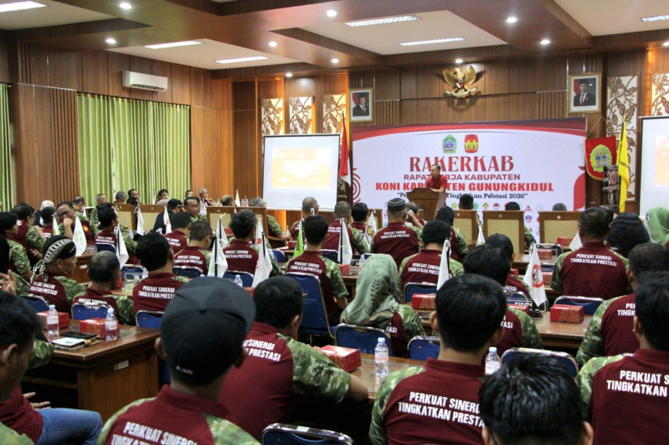 GUNUNGKIDUL - Kapolres Gunungkidul, AKBP Damus Asa, S.H., S.I.K., M.H., yang diwakili oleh Wakapolres Gunungkidul, Kompol Sumanto, S.H., menghadiri Rapat Kerja Kabupaten (Rakerkab) KONI Gunungkidul Tahun 2026. Kegiatan strategis ini berlangsung pada Sabtu (24/1/2026) di Ruang Rapat Handayani, Kantor Sekretariat Daerah (Sekda) Gunungkidul.