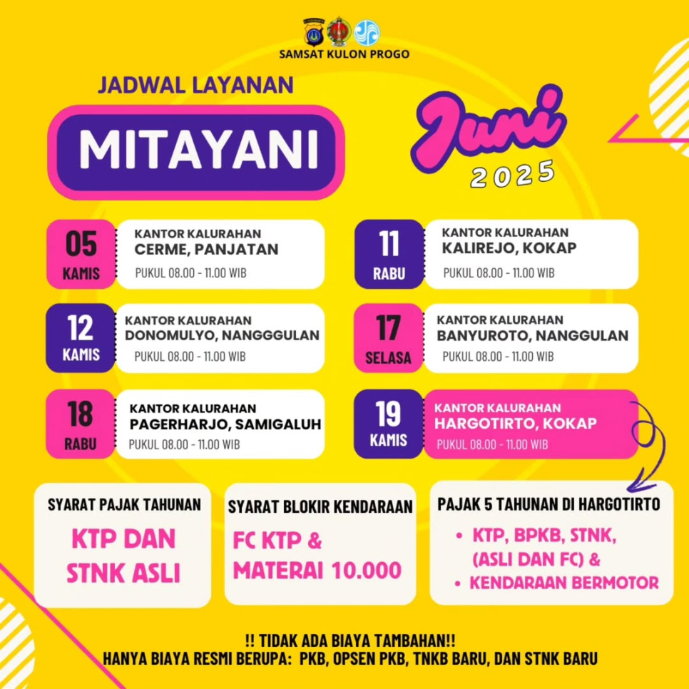 Jadi, segera cek masa berlaku kendaraan anda, dan catat jadwal Mitayani ini. Jangan sampai terlambat membayar pajak ya, sobat!