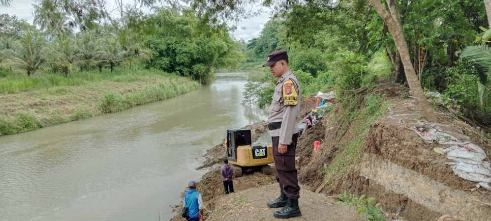 "Apabila hujan deras turun dan debit air meningkat, diharapkan alat berat dan operator siaga (standby) agar dapat segera menutup kembali tanggul yang dibuka untuk akses material maupun alat proyek, sehingga tidak terjadi jebolnya tanggul yang bisa memicu banjir," pesan Aiptu Jajuli.