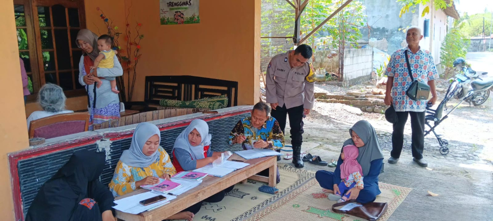 BHABINKAMTIBMAS KALURAHAN TRIHARJO SAMBANGI KEGIATAN POSYANDU TRENGGINAS TAMBAK, TRIHARJO