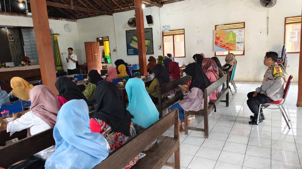Pada kesempatan tersebut, Bhabinkamtibmas Aipda Suprihatin turut memberikan imbauan kamtibmas kepada para peserta. Ia mengingatkan masyarakat untuk selalu waspada terhadap potensi bencana alam di musim penghujan, seperti tanah longsor, tanggul jebol, pohon tumbang, banjir, maupun angin puting beliung.