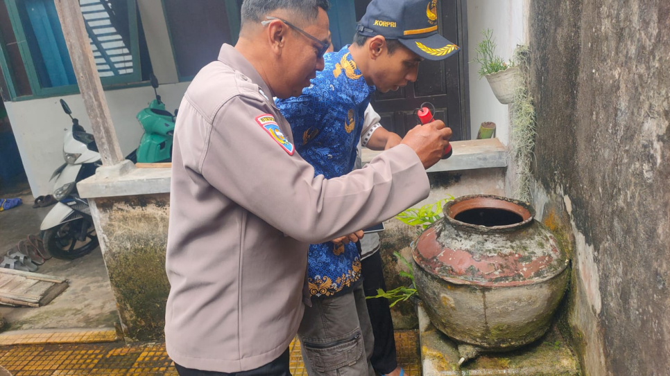 Wates - Dalam rangka menjaga kebersihan lingkungan sekaligus mengantisipasi penyebaran penyakit Demam Berdarah Dengue (DBD), Bhabinkamtibmas Kelurahan Wates Aiptu Nur Rochmanto bersama Kasikesra Kelurahan Wates, kader kesehatan Durungan, serta petugas dari Puskesmas Wates melaksanakan kegiatan pengecekan jentik sarang nyamuk di wilayah Durungan, Kelurahan Wates, pada Selasa (28/10)Kegiatan tersebut merupakan bagian dari upaya preventif dalam menekan angka penyebaran DBD di wilayah binaan. Pihak Puskesmas Wates melakukan pengecekan langsung di rumah-rumah warga untuk memastikan tidak adanya genangan air yang berpotensi menjadi tempat berkembang biaknya nyamuk Aedes aegypti.