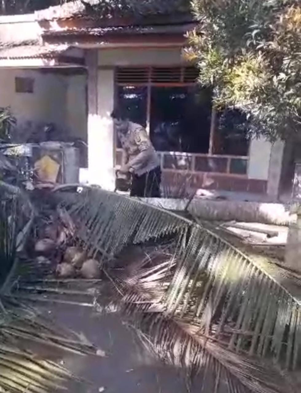 Bhabinkamtibmas Kalurahan Nomporejo Bripka Hendri Agung Wibowo melaksanakan sambang dan evakuasi pohon kelapa yang tumbang mengenai mengakibatkan sebagian pagar rumah Ibu Siti mengalami kerusakan dan tidak ada korban jiwa dalam kejadian tersebut.Dalam kesempatan tersebut petugas memberikan himbauan terkait kewaspadaan bahaya ranting patah maupun pohon tumbang yang bisa terjadi mengingat angin kencang pada akhir2 ini.