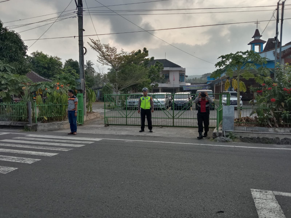 Ciptakan Keamanan, Jajaran Polsek Nanggulan Rutin Laksanakan Pam Gereja Setiap Hari Minggu Pagi